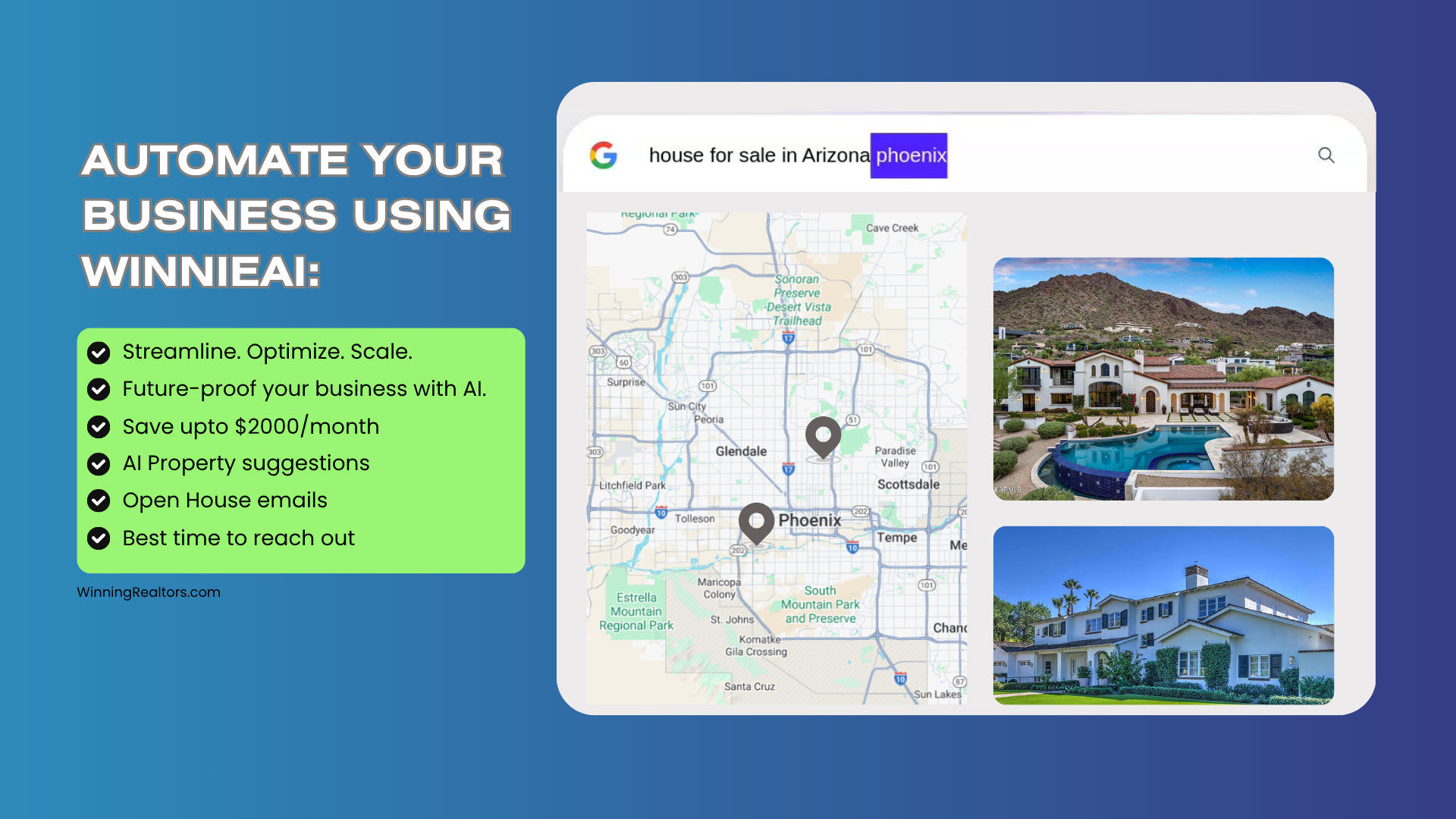 WinningRealtors specializes in building AI-powered real estate websites that work around the clock. We believe winning agents embrace intelligent technology that captures leads automatically, engages prospects instantly, and converts visitors into clients while you focus on closing deals.